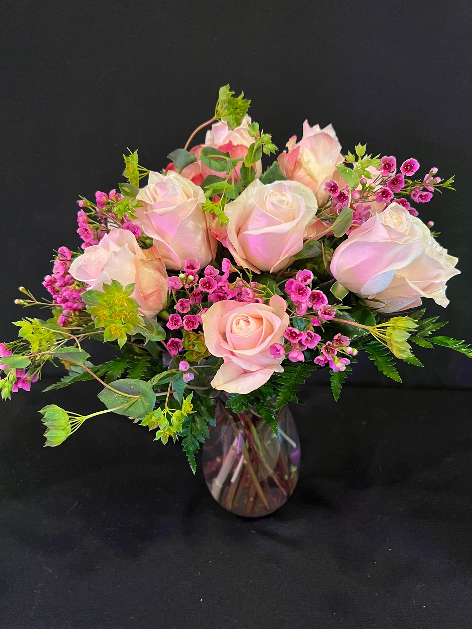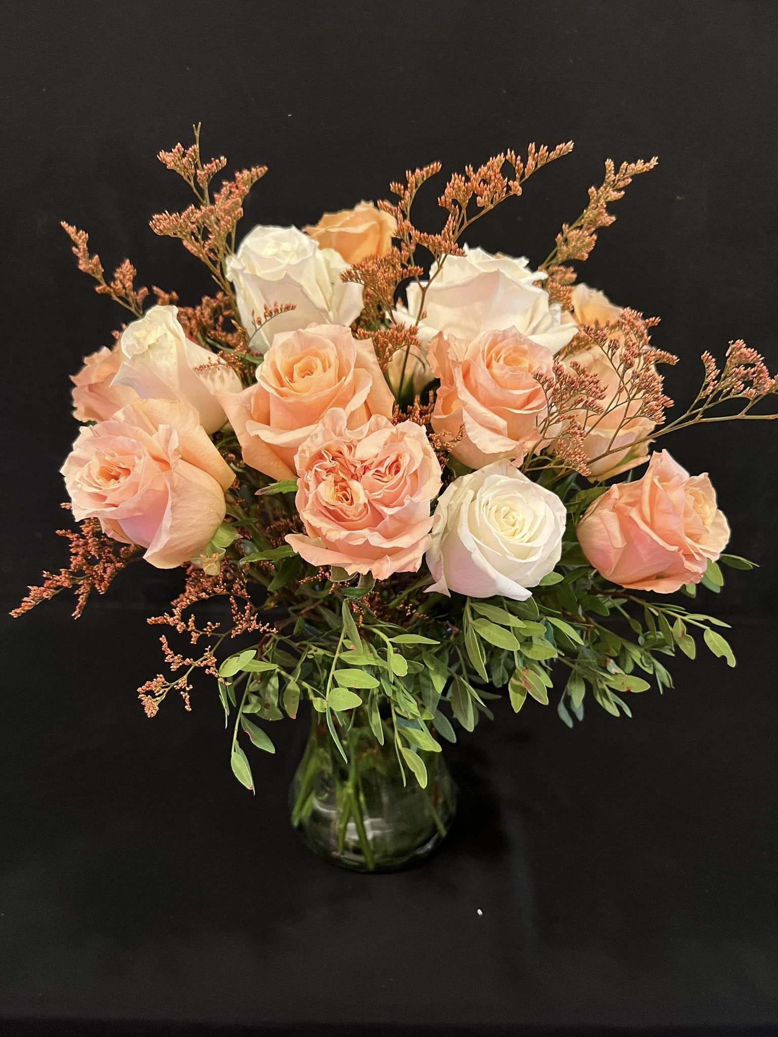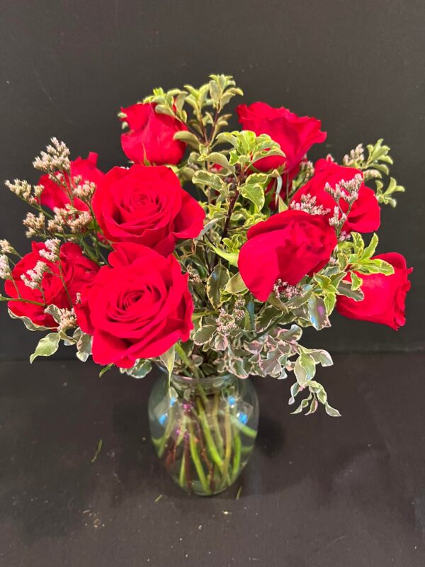 _Order a dozen roses or 1/2 dozen roses. They will arrive arranged in a vase with filler flowers and greenery. Rose colour will depend on availability at time of order.